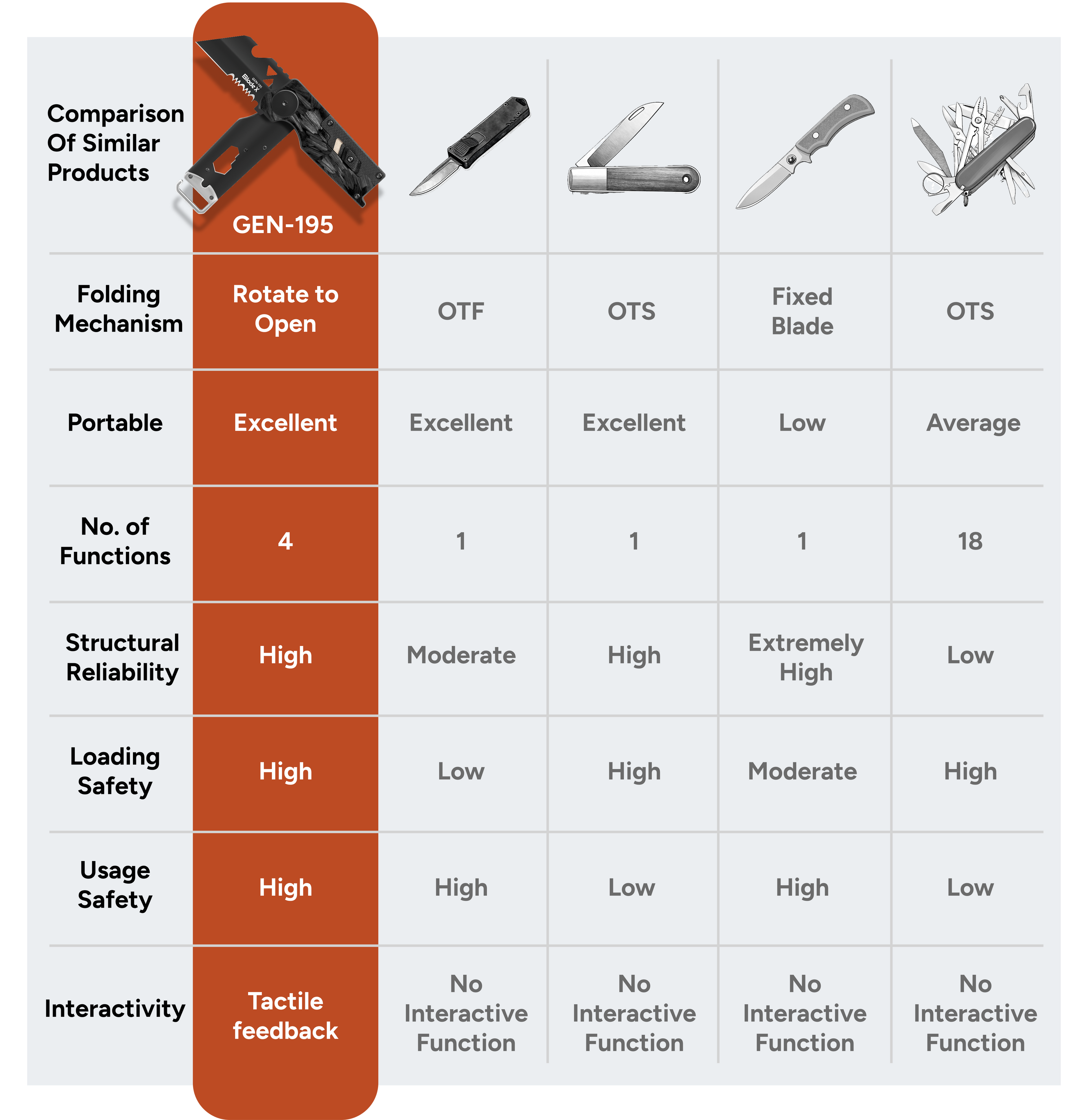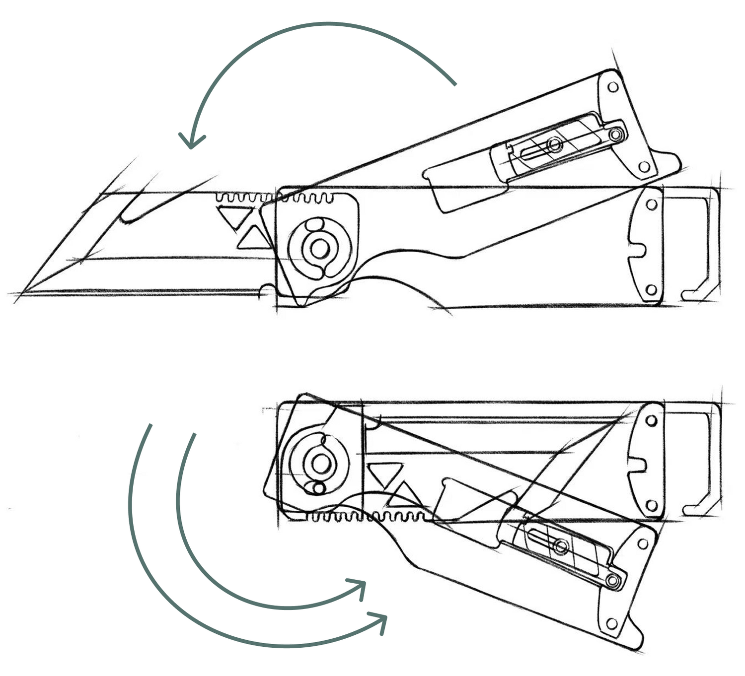 Most EDC knives on the market feature OTF (Out-The-Front) or OTS (Out-The-Side) mechanisms, which are prone to accidental deployment during carry or sudden retraction during use –both posing risks of harm.
